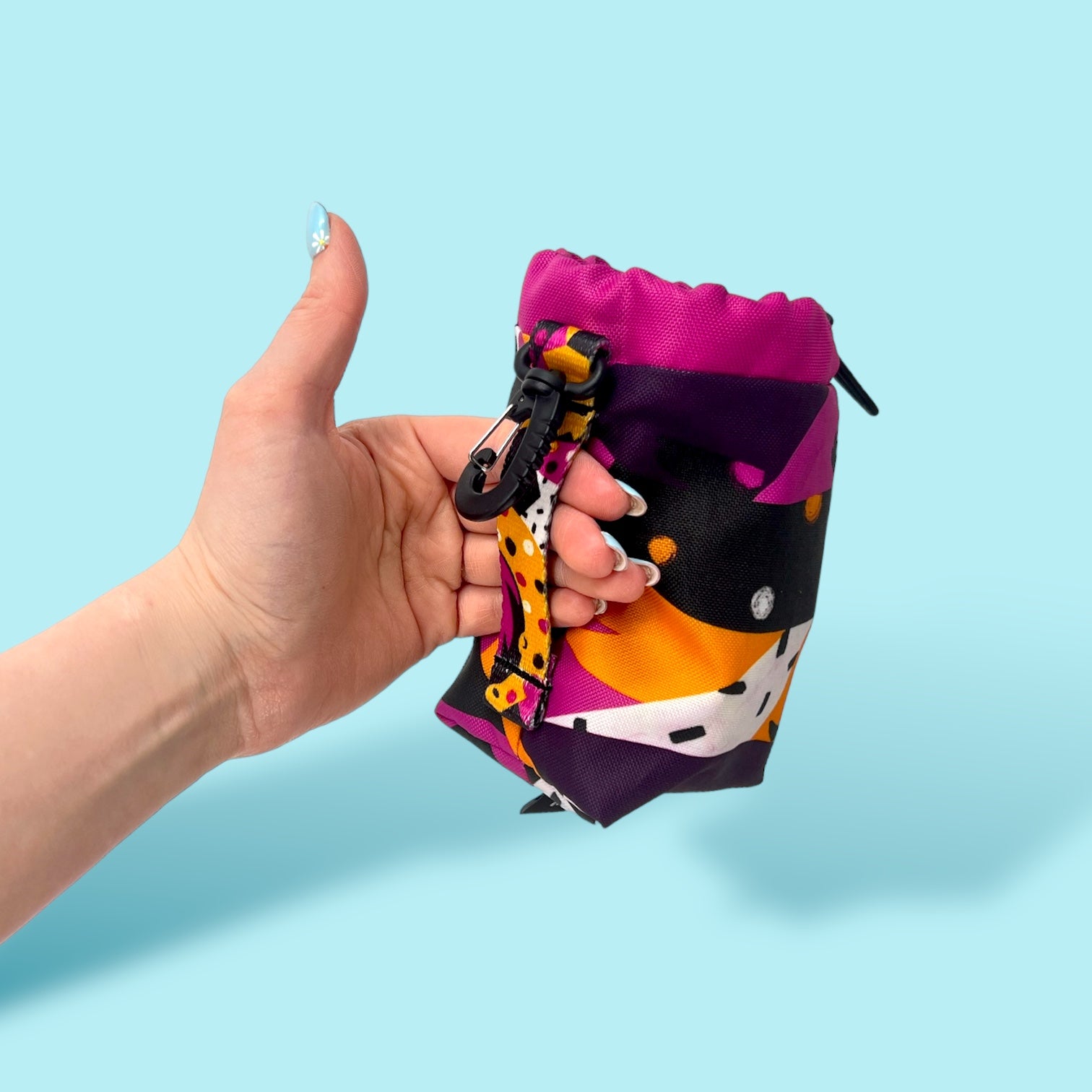 Godbitvesken er laget av vanntett materiale både på utsiden og innsiden, noe som gjør at godbitvesken ikke er redd for noen hundegodbiter. Samtidig er godbitvesken, takket være det vanntette materialet, en lett å rengjøre løsning. Godbitvesken kan lukkes med et strikk for å hindre at godbitene faller ut :).