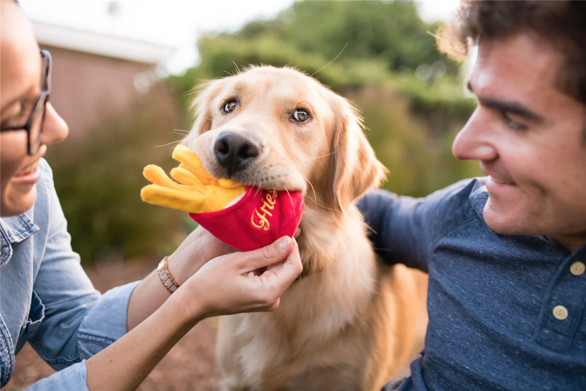 Ketchup på leketid med P.L.A.Y.s American Classic Frenchie Fries-leketøy – den ultimate hundeglede. Disse sprø, krøllete og knirkende spudsene sørger for en magelig leketid. Som en bonus kan du skjule hundens favorittgodbiter i pommes fritesen for ekstra berikelse. Endelig en side med pommes frites laget for valpen din!