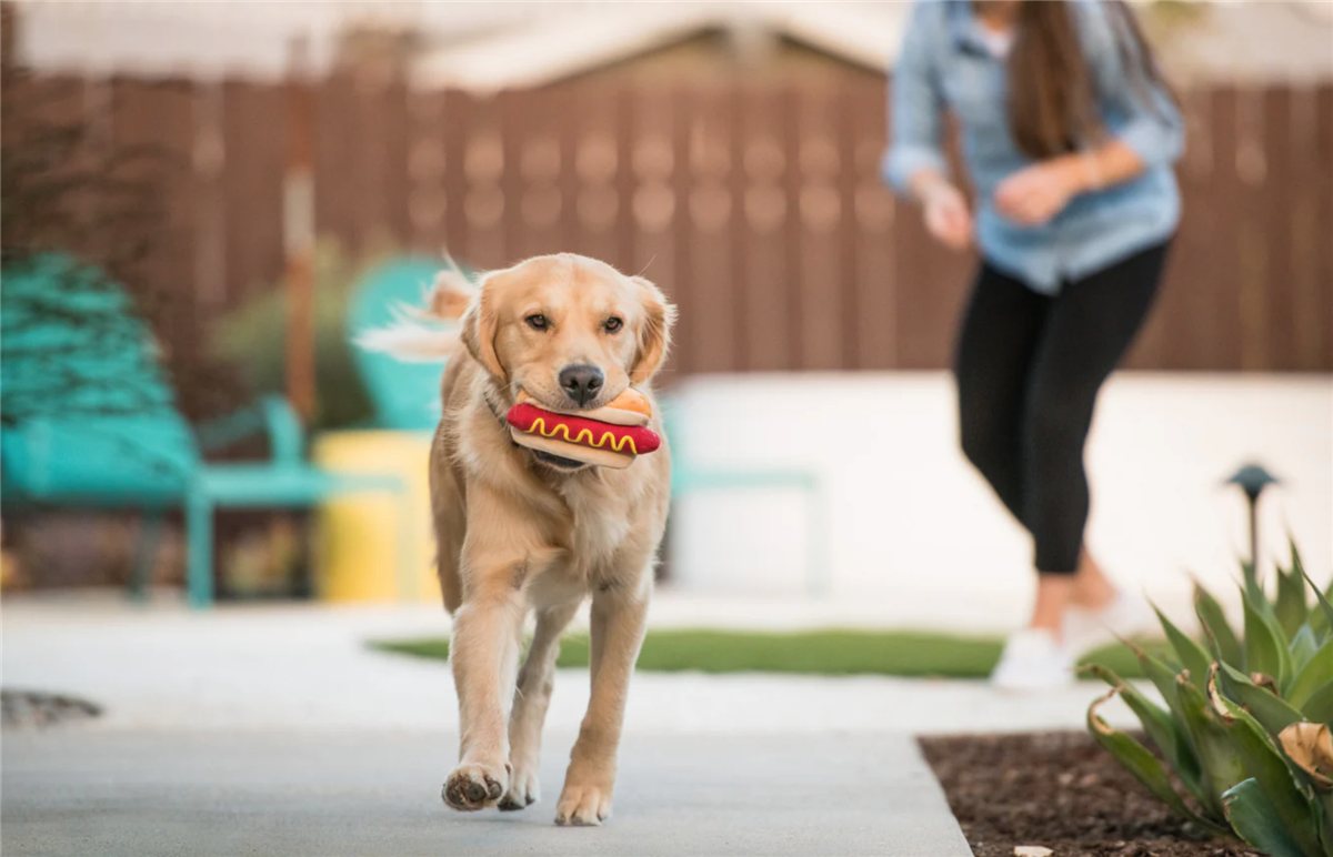 P.L.A.Y-leker utmerker seg ved sin fantastiske design og høye utførelseskvalitet. Hot-dogs-formede leker vil gi hunden din mye glede. Pølsen festes med borrelås, så den hopper ut av bollen og kan brukes som en egen leke. I tillegg inneholder den en lyd inni. Moro har aldri vært så gøy!