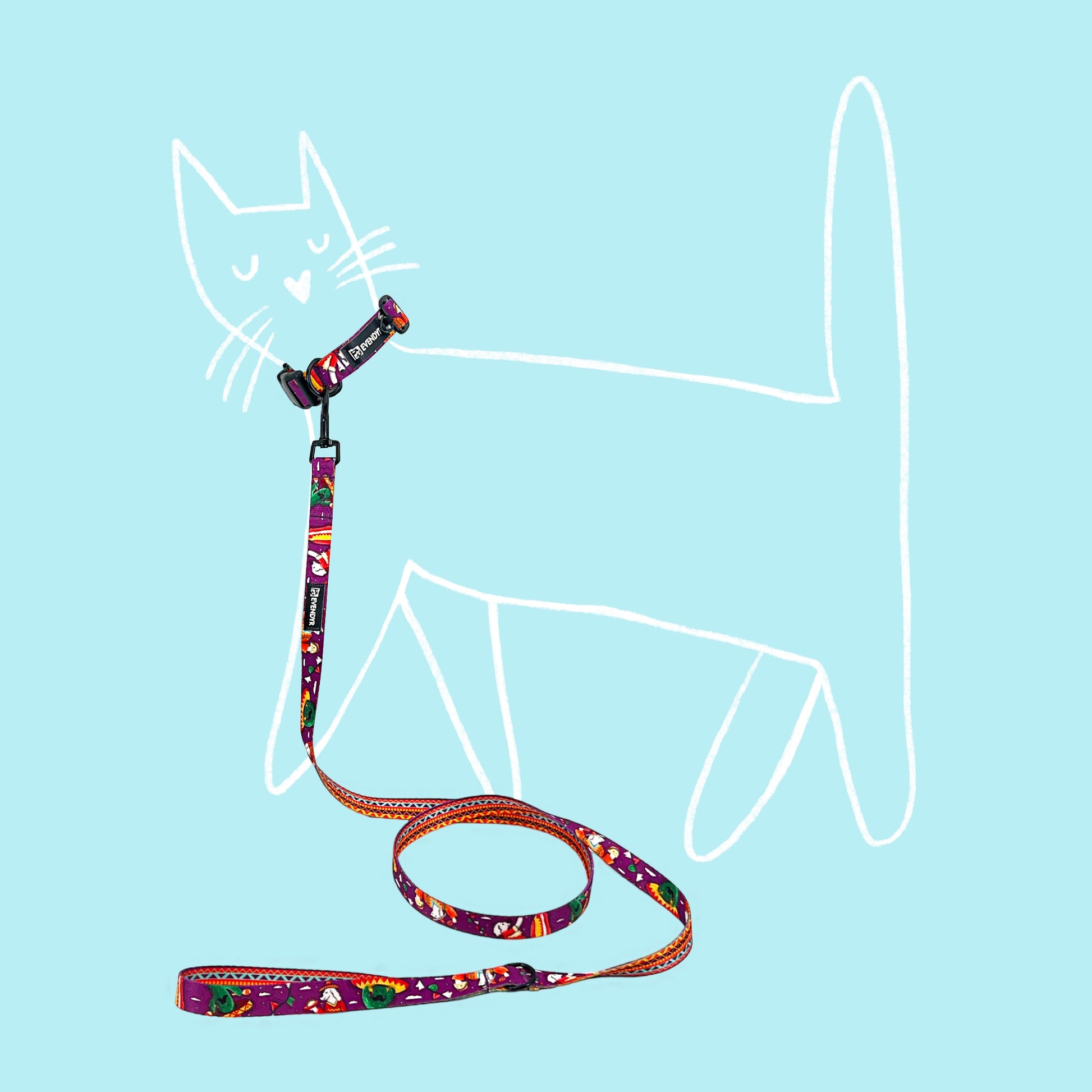 Bybåndet er definitivt et „must have” for hver katt. Vårt unike design og fargerike illustrasjoner vil få katten din til å skille seg ut fra mengden og få den til å føle seg bra og komfortabel.
