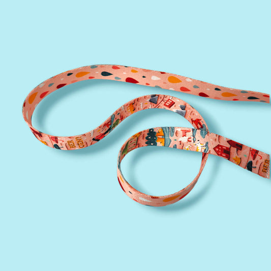 Bybåndet er definitivt et „must have” for hver hund. Vårt unike design og fargerike illustrasjoner vil få hunden din til å skille seg ut fra mengden og få den til å føle seg bra og komfortabel.