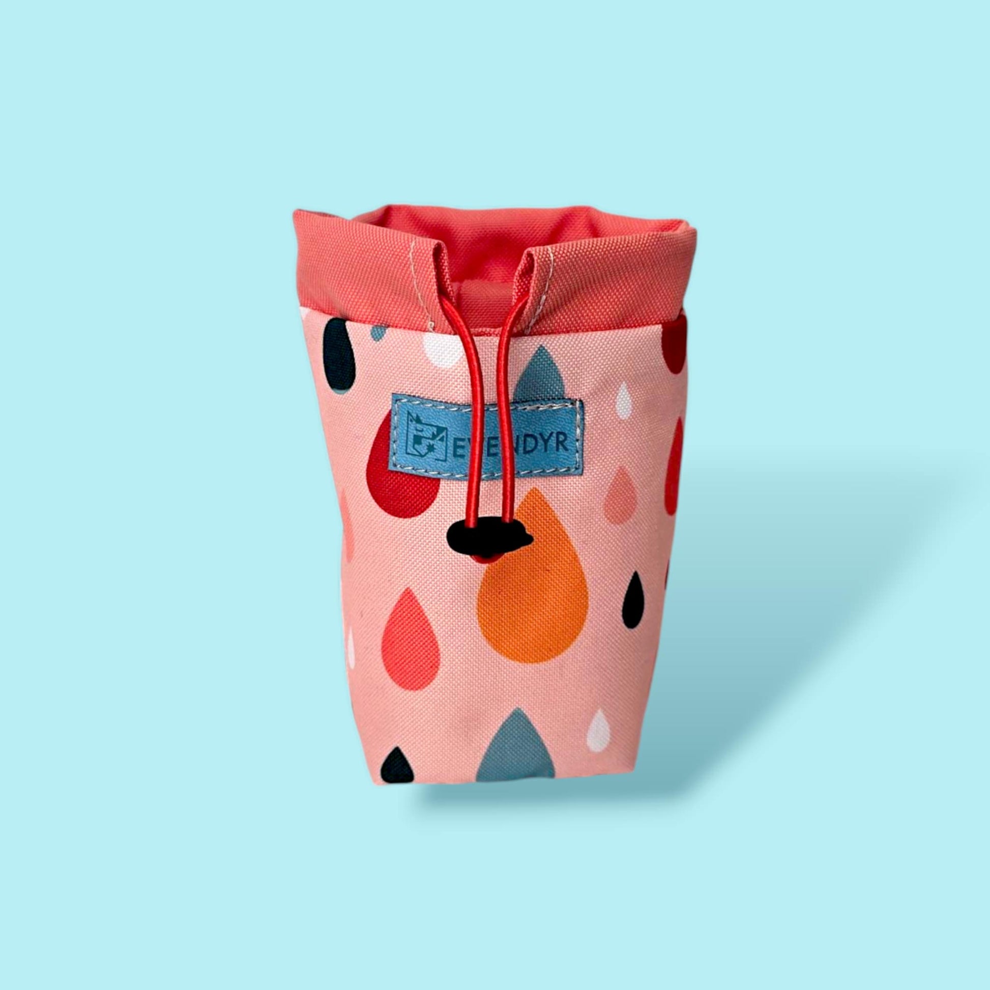 Godbitvesken er laget av vanntett materiale både på utsiden og innsiden, noe som gjør at godbitvesken ikke er redd for noen hundegodbiter. Samtidig er godbitvesken, takket være det vanntette materialet, en lett å rengjøre løsning. Godbitvesken kan lukkes med et strikk for å hindre at godbitene faller ut :).