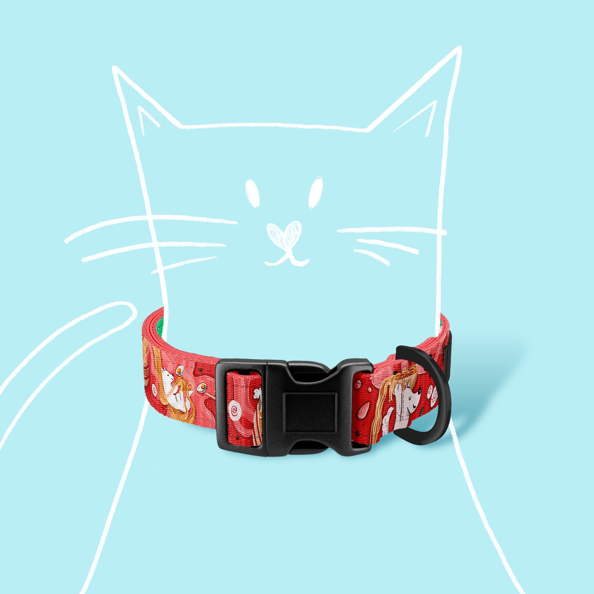 Vi syr kattehalsbåndene av slitesterk og myk tape. Sveisede, sterke beslag garanterer sikkerhet under bruk. Den store fordelen med halsbåndet er den profilerte spennen, som er motstandsdyktig mot frost og andre værforhold. Takket være dette passer halsbåndet perfekt til formen på kattens nakke, og gir den komfort under bruk. Spennen er laget av slitesterk plast, noe som gjør den lett og praktisk. Unike mønstre og iøynefallende farger gjør halsbåndene våre unike.