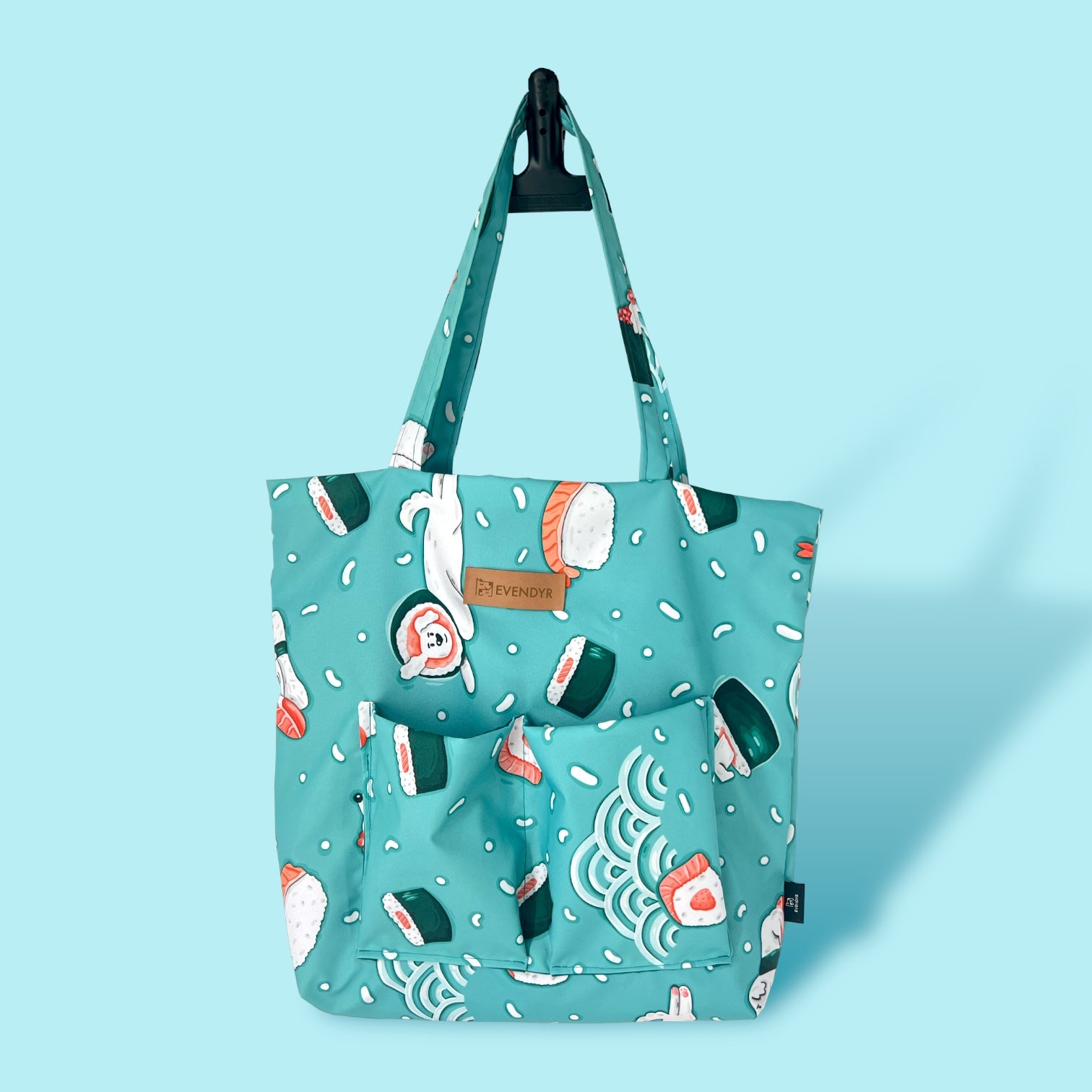 Har du glemt noen gang handleposene hjemme når du skal handle? Kjøper du mer og mer på matbutikken og posene sprekker halvveis hjem? Evendyr shoppingvesker vil gjøre livet ditt enklere! Laget av vanntett materiale både utvendig og innvendig, noe som gjør vesken motstandsdyktig mot alle værforhold. (selv i Bergen :)). Vesken er perfekt for en tur, i byen eller på en lengre tur.